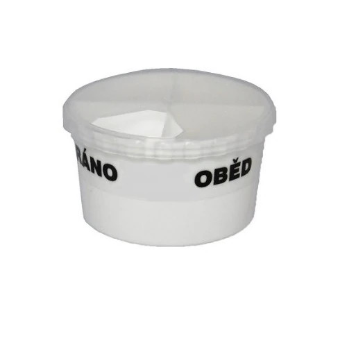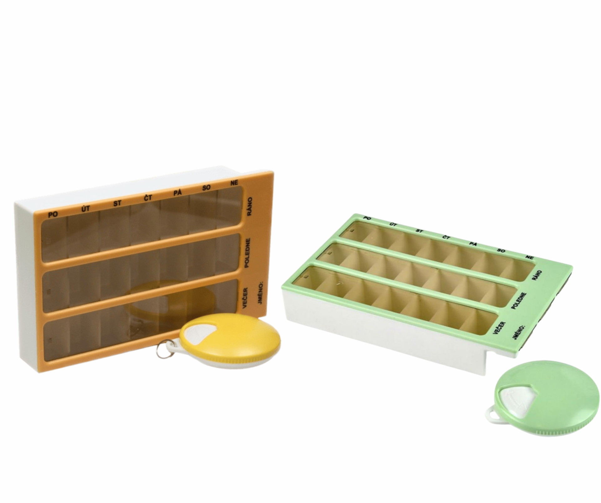 Každý den je rozdělen na 3 části RÁNO / POLEDNE / VEČER. Každá část dne i týdne se otevírá samostatně pomocí vysunutí šoupátka.