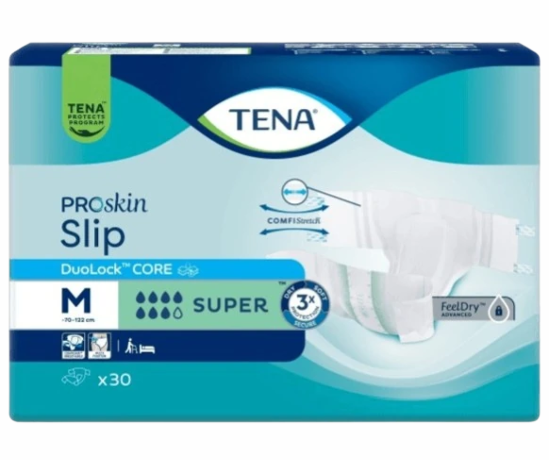 • Prodyšnost je zajištěna i po stranách a na zadní straně produktu, což umožní udržení přirozeného mikroklima/vlhkosti pokožky. Rychlé a vysoko absorpční jádro umožňuje rychle odvést moč od pokožky a zajišťuje ochranu při úniku moči i stolice, a tím podporuje komfort a důstojnost uživatele. Prodyšný materiál umožňuje průchod vzduchu, čímž zvyšuje pohodlí uživatele a snižuje výskyt dermatologických potíží. Všechny materiály jsou pečlivě posuzovány a dermatologicky testovány.
